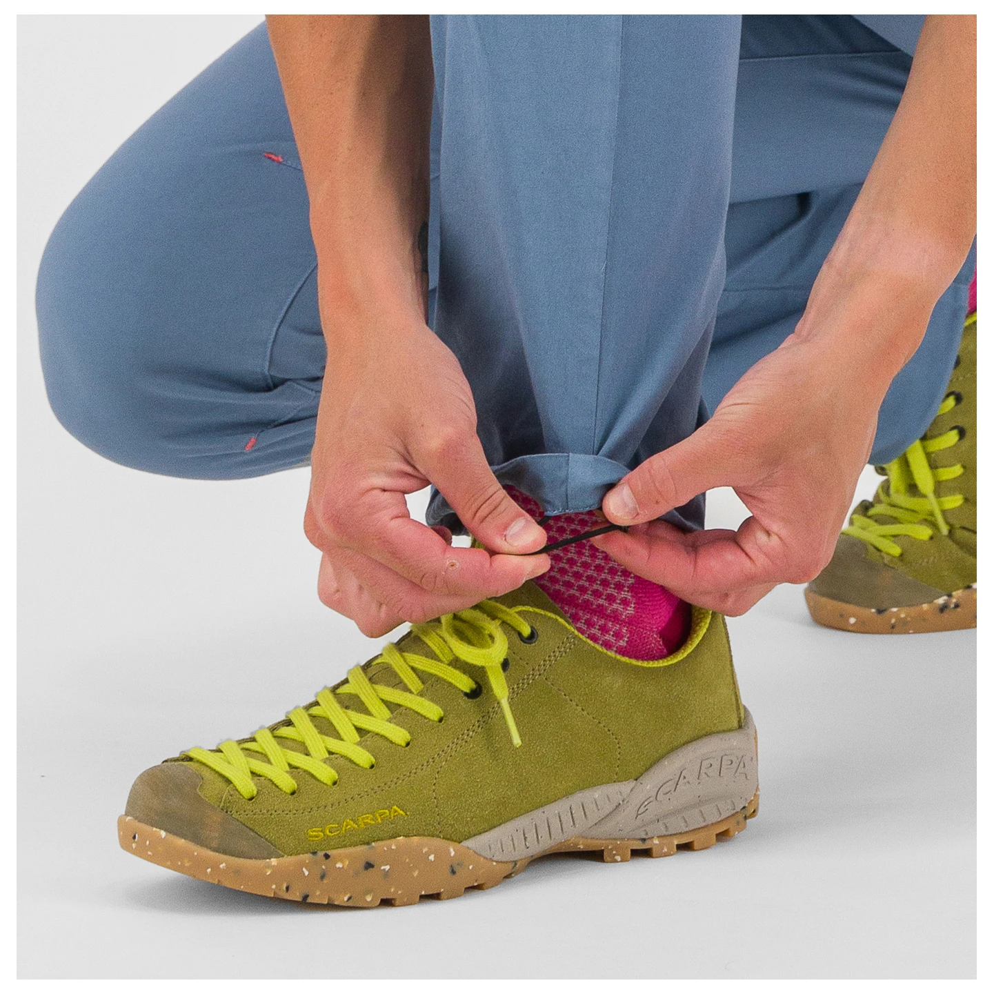 Durable bouldering trousers with adjustable leg cuffs