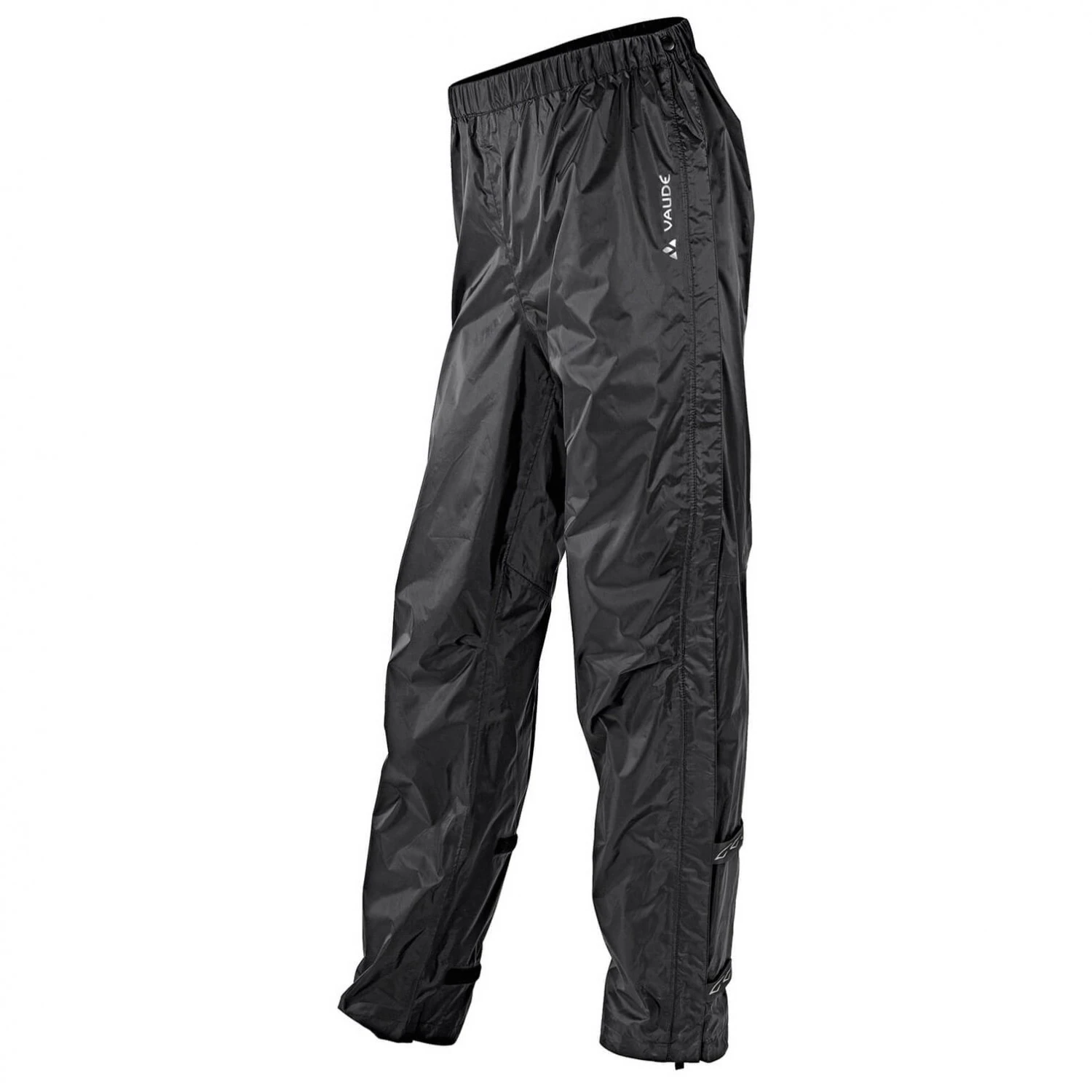 And if you don’t have enough time to get back, the Fluid Full-Zip Pants II by Vaude are pulled over your clothes in no time to protect you against rain, wind and mud! These rain pants with a full-length zipper should always be on hand when you need reliable protection against the elements on the go. The rain pants are perfectly suited for hiking, trekking, but also for biking, whether it be for leisure or every day. Its Ceplex Active material isn’t just wind and waterproof, but also highly breathable. This will not only keep you protected against outside moisture, but will also quickly wick any moisture produced by your body outwards. If it starts to rain unexpectedly, these pants can be simply pulled over your clothing ? you won’t even need to take off your shoes first, as the handy zippers can be opened to slip the pants over them. Despite their comfortable cut, they will not restrict in any way as the leg ends are also width adjustable. The Vaude Fluid Full-Zip Pants II will let you finish your tour no matter what the weather brings!